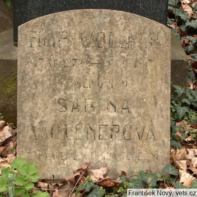 Sabina Wollnerová, 12.5.1869, Praha II, 6.7.1942 deportována do Terezína, tam zahynula 2.5.1943