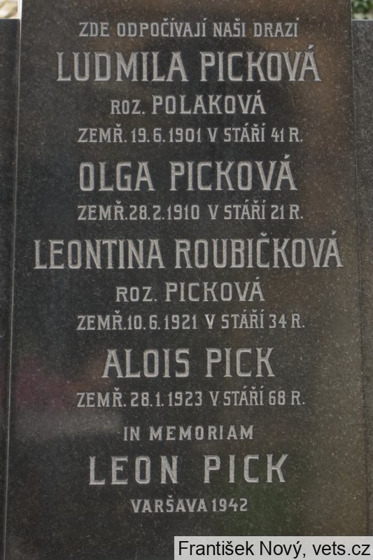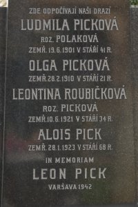 Leo Pick, 29.6.1895, Praha XIII, 16.4.1942 deportován do Terezína, 25.4.1942 do Varšavy