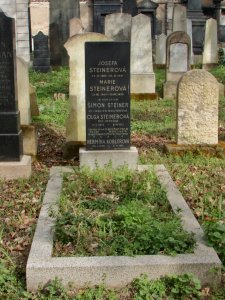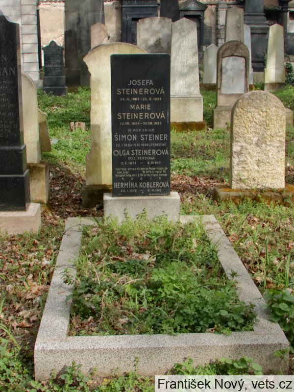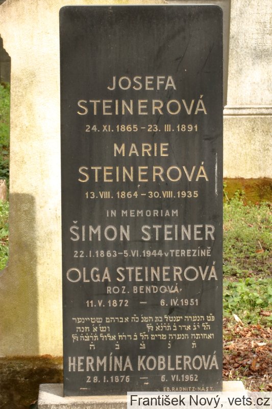 Simon Steiner, 22.1.1863 a Olga Steinerová, 11.5.1872, Praha XII, 6.7.1942 deportováni do Terezína, tam Simon zahynul 5.6.1944, Olga přežila
