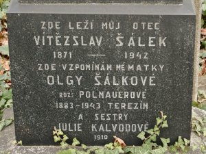 Olga Šálková (Schalková), 23.5.1883, Praha X, 27.7.1942 deportována do Terezína, tam zahynula 18.12.1943