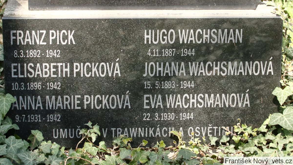Hrob a kenotaf Ludwig, Franz, Elisabeth a Anna Marie Pickovi a Hugo, Johana a Eva Wachsmanovi