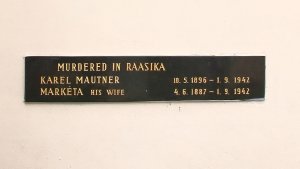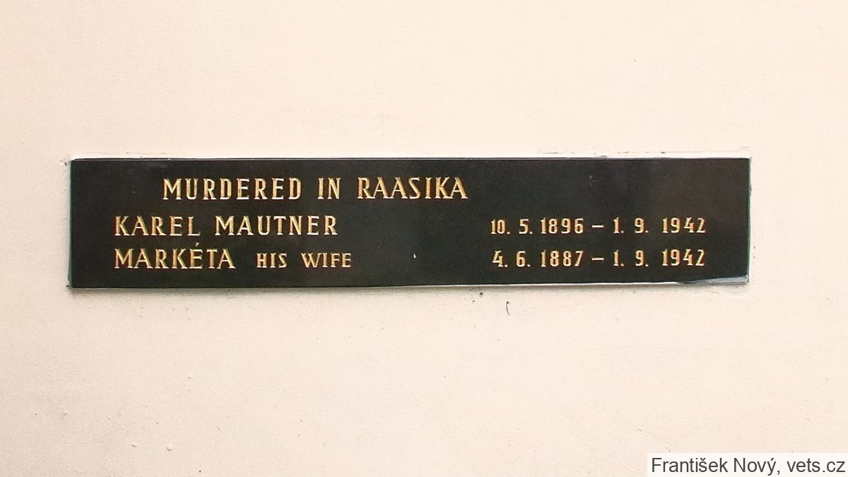 Karel Mautner, 10.5.1896 a Markéta Mautnerová, 4.6.1887, Praha I, 27.7.1942 deportováni do Terezína, 1.9.1942 do Raasiky