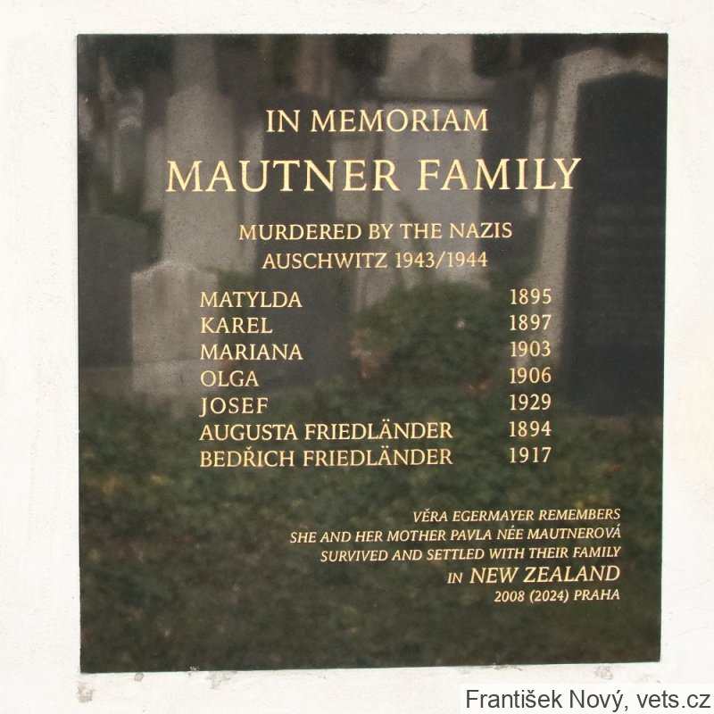 Olga Mautnerová, 1.6.1906, Praha XII, 2.7.1942 deportována do Terezína, 12.10.1944 do OsvětimiJosef Mautner, 13.12.1929, Praha XII, 22.12.1942 deportován do Terezína, 28.10.1944 do Osvětimi