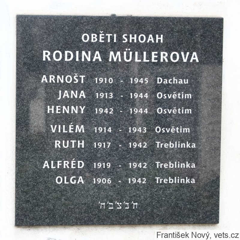 Pamětní deska Arnošt, Jana, Henny, Vilém, Ruth, Alfréd a Olga Műllerovi
