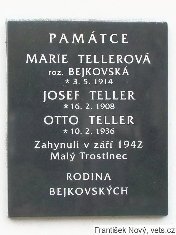 Marie Tellerová, 3.5.1914, Josef Teller, 16.2.1908 a Otto Teller, 10.2.1936, Votice, 4.9.1942 deportováni do Terezína, 8.9.1942 do Malého Trostince