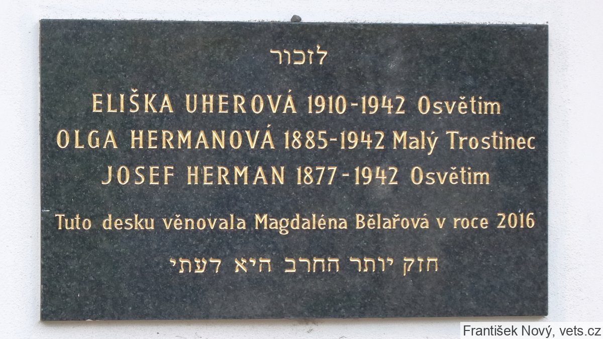 Pamětní deska Eliška Uherová, Olga a Josef Hermanovi