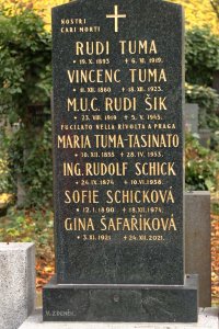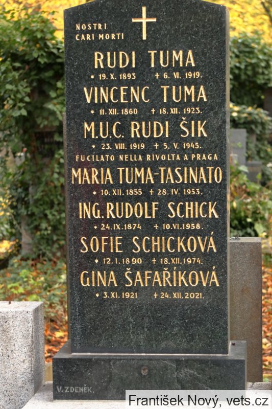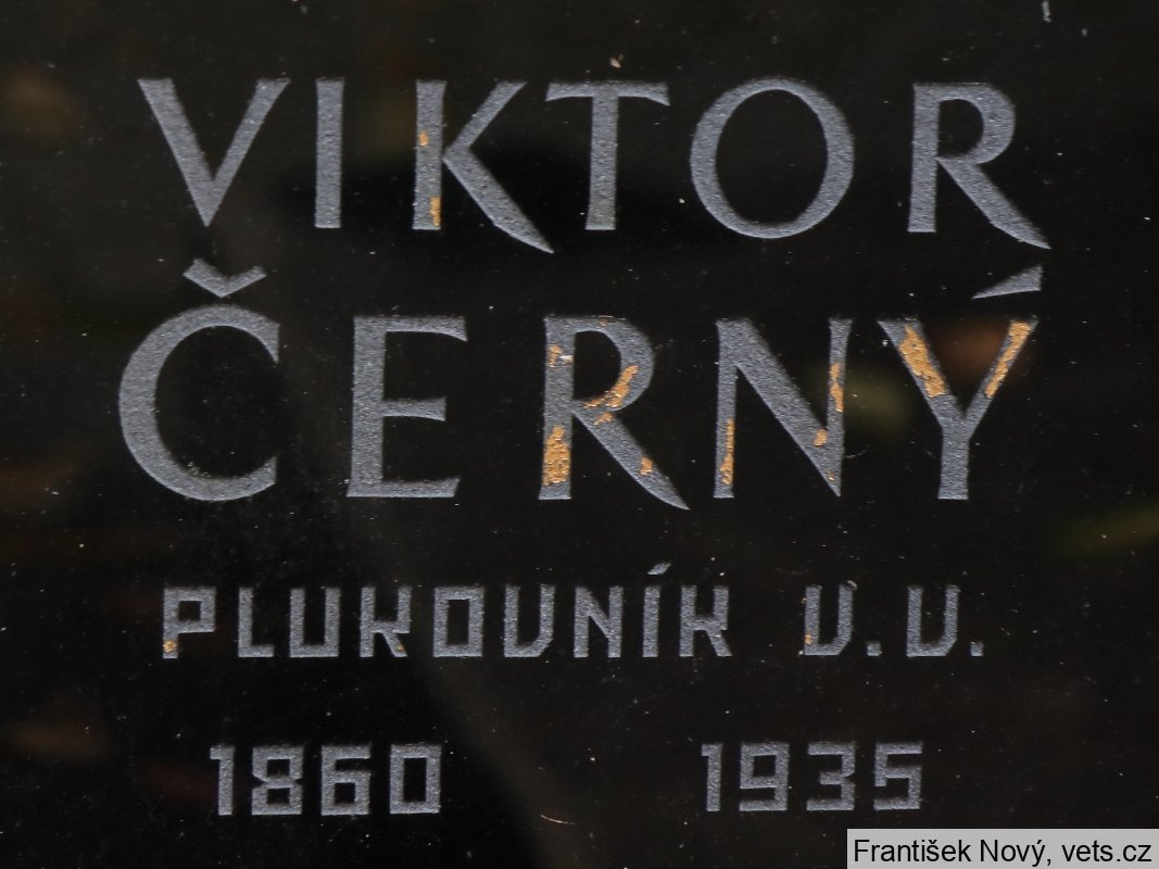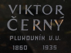 Viktor Černý - na levé spodní desce za menší kytkou a zlatým deštěm, viz foto celého pomníku, nápis je z fotky nezřetelný.