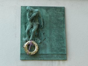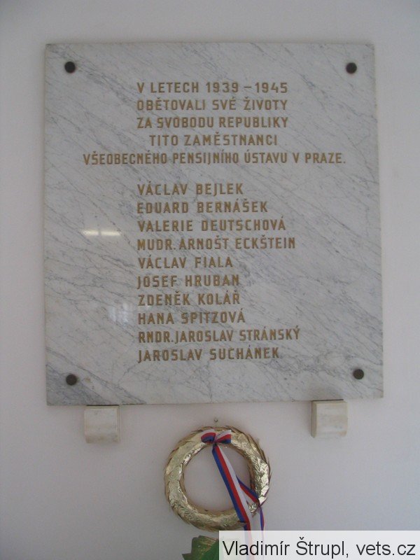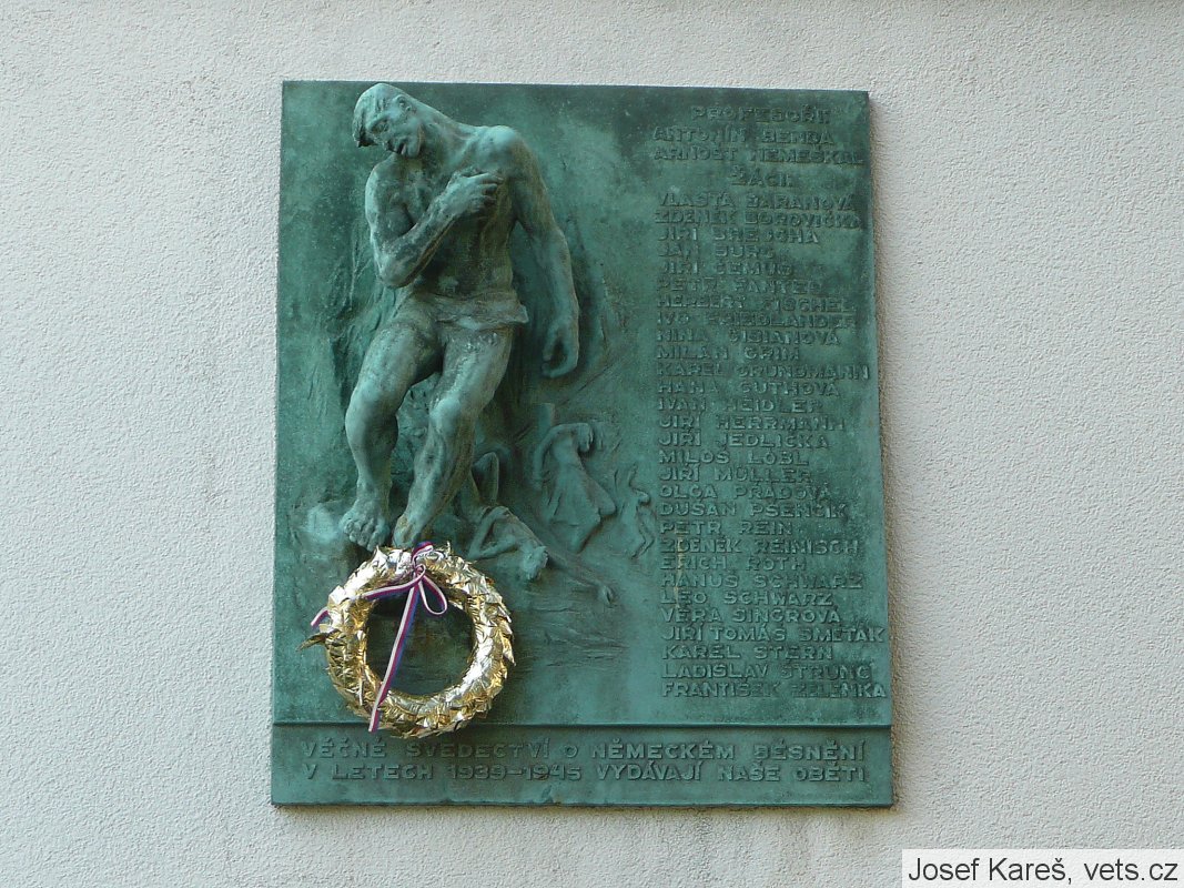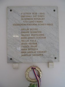Původní pamětní deska, umístěná uvnitř objektu, zmizela při rekonstrukci budov. Novou nechal zhotovit ÚMČ Praha 3 a byla slavnostně odhalena 5.5.2025.