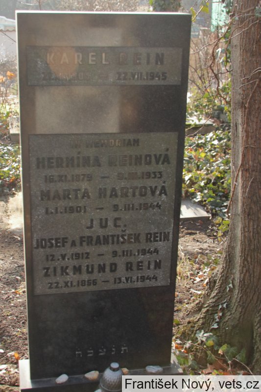 Josef Rein, 12.5.1912, Praha XII, deportován 22.12.1942 do Terezína, 6.9.1943 do Osvětimi