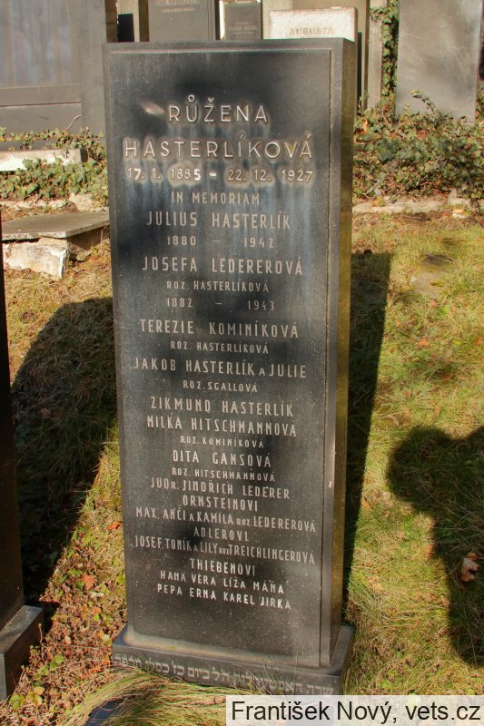 Tereze Kominíková, roz. Hasterlíková, 6.12.1868, Praha II, deportována 16.7.1942 do Terezína, tam 4.3.1943 zemřela