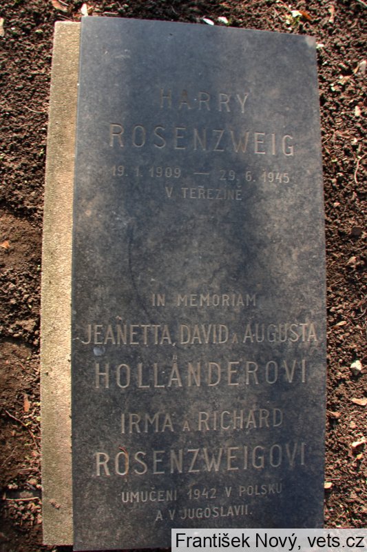 Harry Rosenzweig, 19.1.1909, Praha XI, deportován 30.10.1941 do Lodže, zemřel 29.6.1945 v Terezíně, zpopelněn 1.7.1945