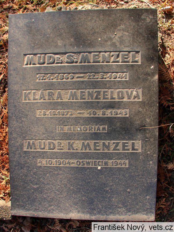 MUDr. Karel Menzel, 4.10.1904, Praha XVI, deportován 22.12.1942 do Terezína, 23.10.1944 do Osvětimi