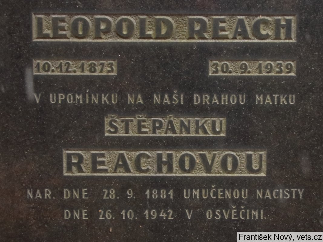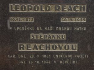 Štěpánka Reachová, 28.9.1881, Praha XII, 30.7.1942 deportována do Terezína, 16.10.1942 do Osvětimi