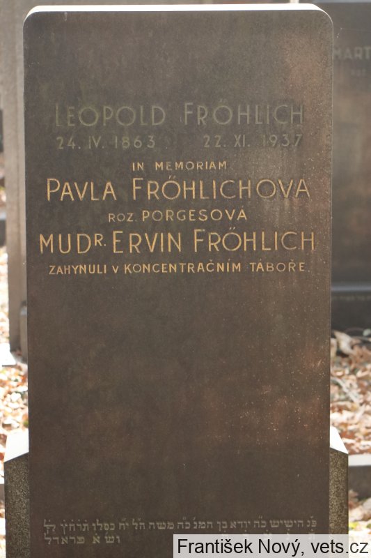 Ervín Fröhlich, 2.11.1942, Praha V, 20.11.1942 deportován do Terezína, 20.1.1943 do Osvětimi, tam 6.2.1943 zahynul