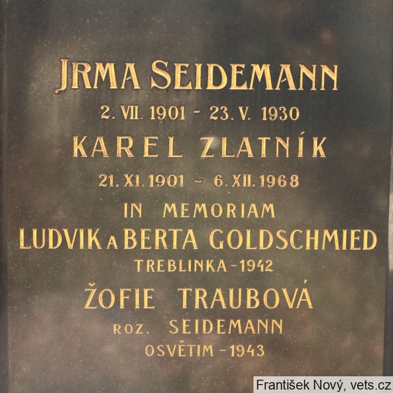 Ludvik Goldschmied, 17.1.1869 a Berta Goldschmiedová, 14.1.1873, Praha XII, 9.7.1942 deportován do Terezína, 19.10.1942 do Treblinky