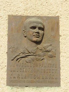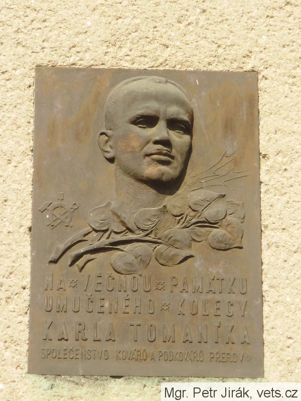 Na Tomaníkův rodný dům (č. p. 68) nechalo v roce 1946 Společenstvo kovářů a podkovářů přerovského okresu zasadit bronzovou pamětní desku.