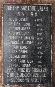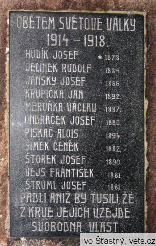 HUDÍK JOSEF *1878, JELÍNEK RUDOLF *1884, JÁNSKÝ JOSEF *1886, KRUPIČKA JAN *1892, MERUŇKA VÁCLAV *1887, ONDRÁČEK JOSEF *1880, PISKAČ ALOIS *1894, ŠIMEK ČENĚK *1882, ŠTOREK JOSEF *1890, VEJS FRANTIŠEK *1881, ŠTRUML JOSEF *1881