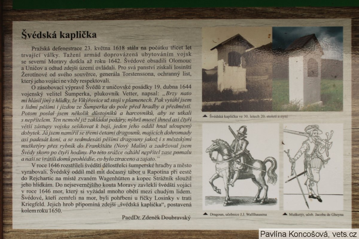 Do nejsevernějšího kouta Moravy zavlekli švédští vojáci v roce 1646 mor. Švédové, kteří zemřeli na mor, byli pohřbeni u říčky Losinky. Jejich hrob připomíná zdejší „švédská kaplička", postavená kolem roku 1650.