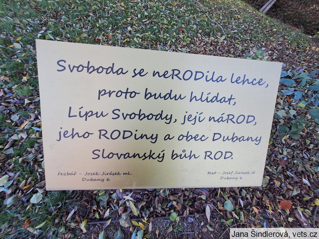 Umístění: Dubany, park u hřiště, u lípy Svobody, střed obceNápis: