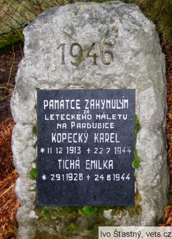 Kopecký Karel oběť leteckého náletu na Fantovu rafinérku ropy v Pardubicích, Tichá Emilka oběť leteckého náletu na rafinérii ropy v Pardubicích (zdroj databáze CEVH MO ČR)