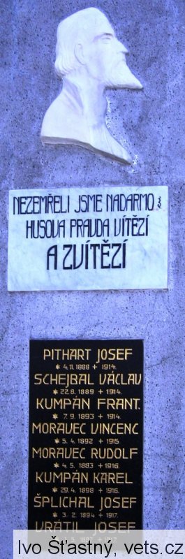 PITHART JOSEF *4.11.1888 +1914, SCHEJBAL VÁCLAV *22.8.1889 +1914, KUMPÁN FRANT. *7.9.1893 +1914, MORAVEC VINCENC *5.4.1892 +1915, MORAVEC RUDOLF *4.5.1883 +1916, KUMPÁN KAREL *29.4.1898 +1916, ŠPLICHAL JOSEF *3.2.1894 +1917, VRÁTIL JOSEF *1.5.1887 +1917.