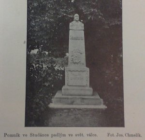 - nápis na zadní straně pomníku: Věnoval pokrokový vzdělávací kroužek pro studánku a Familii 1925.
