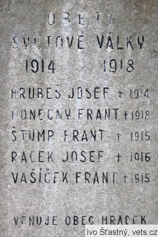 Umístění: Hrádek, hřbitov v lese, vpravo od silnice směr Doubravice, proti Pohránovskému rybníkuNápis: