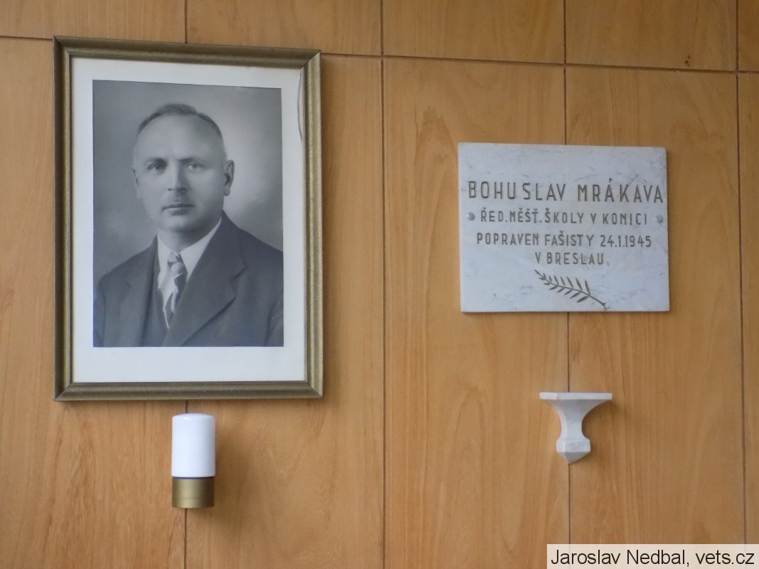 Kenotaf někdejšího ředitele měšťanské školy v Konici, popraveného v lednu 1945 v poslední skupině převážně moravských odbojářů ve věznici ve Vratislavi.