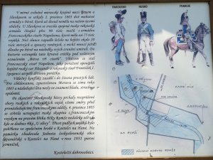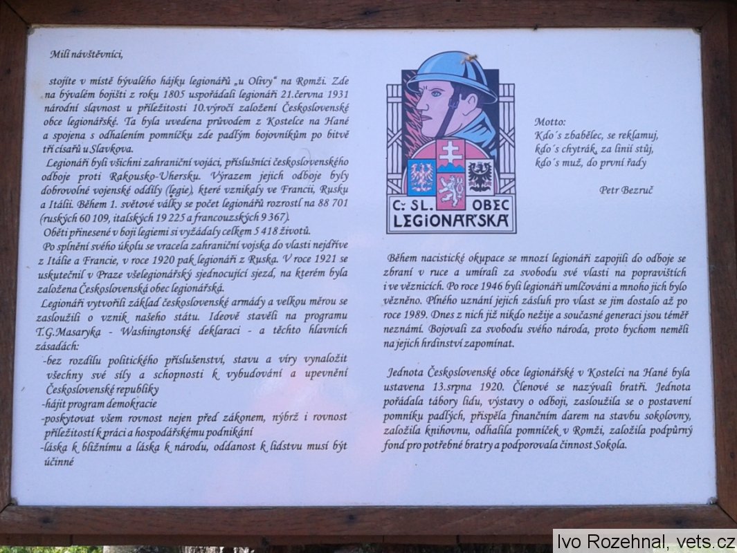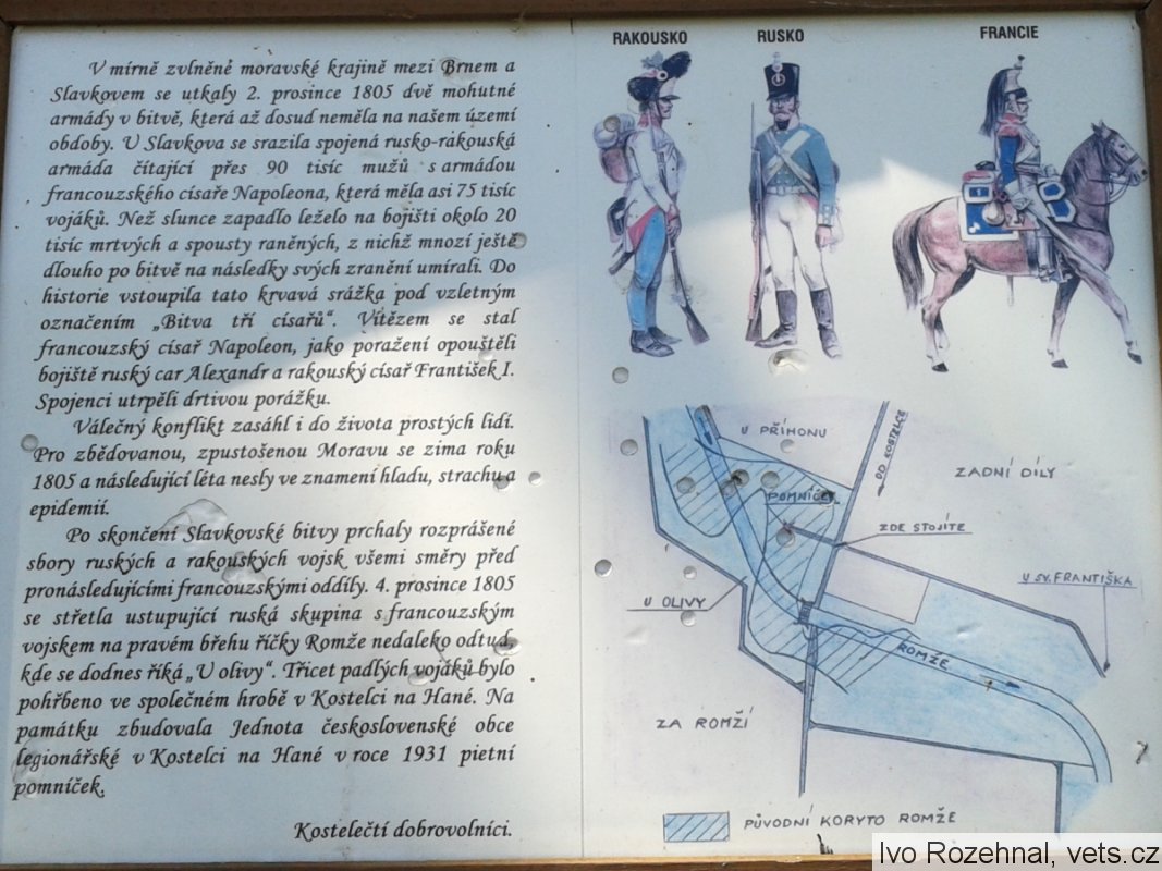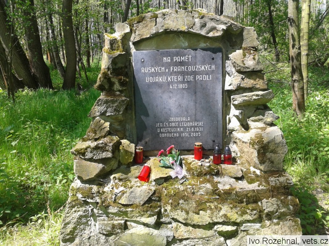 Pomník je připomínkou krvavé srážky ruských a francouzských oddílů. Prchající rusové po skončené bitvě Tří císařů u Slavkova zde byli dohnáni a napadeni. Potyčka se stala dva dny po triumfu Napoleona, asi 50 km daleko od slavného bojiště. V místě zvaném U olivy, se tak uskutečnila řež, kdy zde padlo třicet vojáků. Ti našli odpočinek na zdejším hřbitově v Kostelci na Hané.