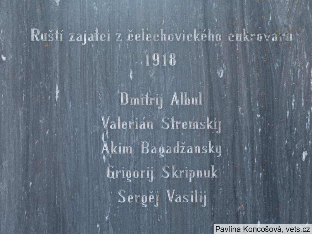 Dr. Kar.Všetička legionář 8/9 1918, Jul. Hybl popraven 5/5 1915, Kar. Otáhal 24/8 1914, Nor. Otáhal 24/8 1914, Al. Havel 27/8 1914, Jan Albrecht 8/9 1914, Jan Kouřil 9/9 1914, Voj. Bureš 23/10 1914, Tom. Lazna 26/10 1914, Jos. Kaštil 8/11 1914, Voj Černý 15/12 1915, Al. Přidal 17/3 1915, Fr. Šindelář 17/3 1915, Al. Bašný 25/4 1915, Jos. Vymazal 1/6 1915, Fr. Břeha 19/6 1915, Jak. Kaštil 27/8 1915, Leo Novák 1/9 1915, Jak. Páleník 4/9 1915, Boh. Albrecht 4/9 1915, Jan Komár 13/9 1915, Fr. Doležel 26/10 1915, J….10/8 1915 (nečitelné jméno), Jan Luňáček 17/11 1915, Ig. Zhříval 8/6 1916, Tom. Drápal 10/6 1916, Raim. Drápal 10/6 1916, Vít Smékal 11/6 1916, Fr. Nehera 25/6 1916, Jan Bartlík 29/6 1916, Amb. Hupšil 6/7 1916, Ant. Vykopal 1/1 1917, Kar. Trnka 9/8 1917, Jos. Strouhal 12/7 1917, Fr. Koníček 17/7 1917, Fr. Kempler 26/9 1917, Fr. Drtil 5/10 1917, Syl. Kaláb 27/? 1918, V. Lenek 30/6 1918, Fr. Malisek 28/8 1918, Fr. Najer ?/9 1918, Kar. Bašný 14/9 1918, Frant. Vac…8/? 1914, Frant. Havlík (?) ?/? 1916