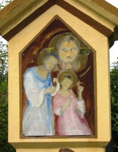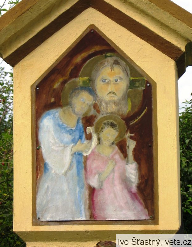 Druhá polovina textu je na desce na nedalekém plotu.