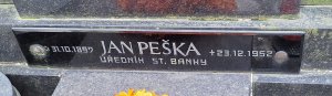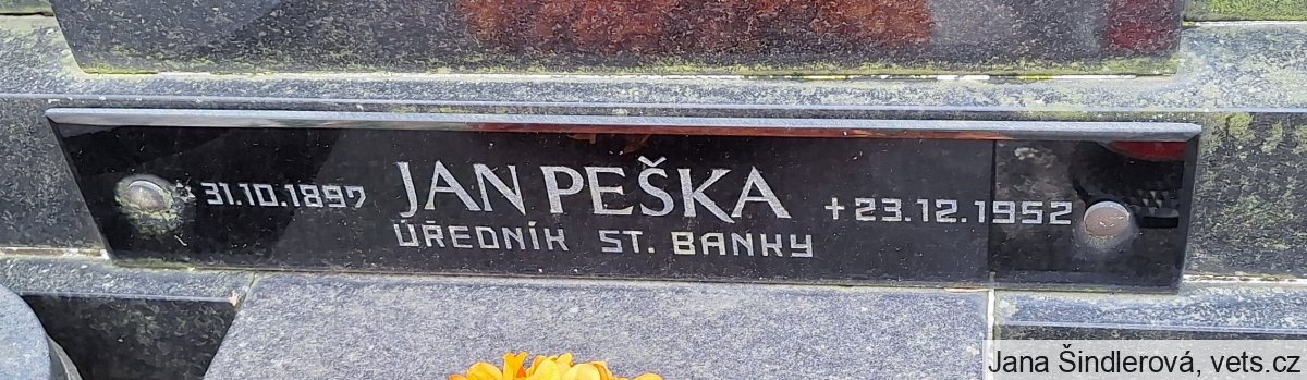 Umístění: Lázně Bohdaneč, Pod Břízami, hřbitov s kaplí sv. Jiří, kolem NS Gočárův okruh*31.10.1897 JAN PEŠKA +23.12.1952
