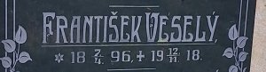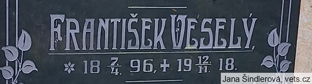 František Veselý, hodnost: praporečník, narozen: 1896 Lázně Bohdaneč, zemřel: 12.11.1918 tamtéž, armáda: rakousko-uherská, pohřben v hrobě č. 150.
