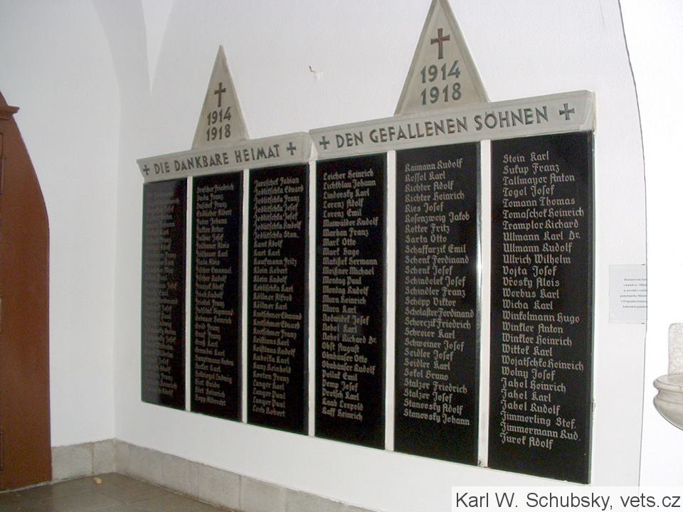 Umístění: Bílovec, Slezské náměstí 282/26, 6 desek se jmény padlých v kostele sv. MikulášeNápis: