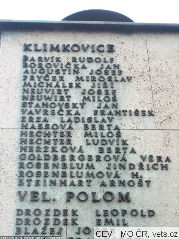 BARVÍK RUDOLF, BOROVIČKA JAN, AUGUSTIN JOSEF, FRYČEK MIROSLAV, MICHÁLEK JIŘÍ, NEUVIRT JOSEF, NEUWIRT MILOŠ, STANOVSKÝ JAN, VAVREČKA FRANTIŠEK, ZRZA LADISLAV, HASSOVÁ BERTA, HECHTER MILOŠ, HECHTER LUDVÍK, HERZKOVÁ BERTA, GOLDBERGEROVÁ VĚRA, ROSENBLUM JINDŘICH, ROSENBLUMOVÁ H., STEINHART ARNOŠT