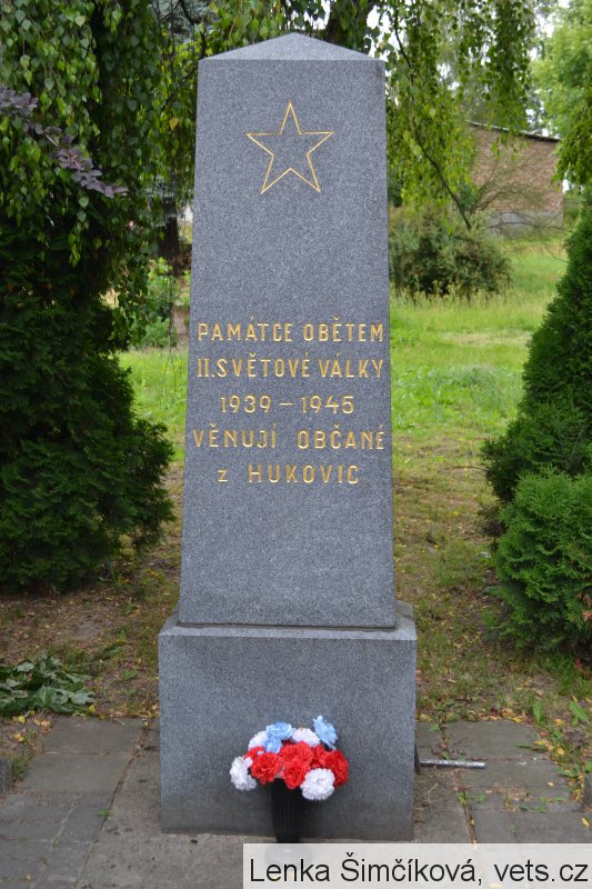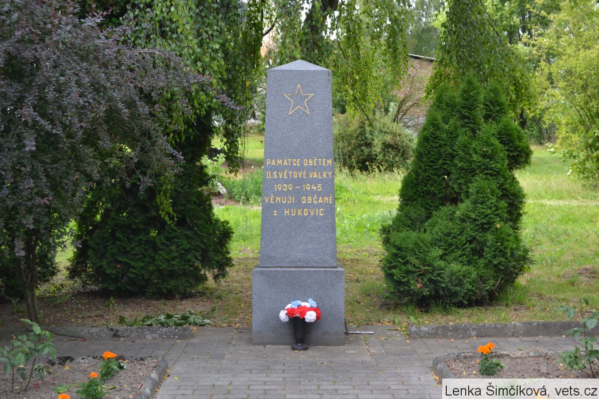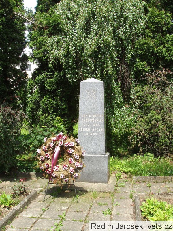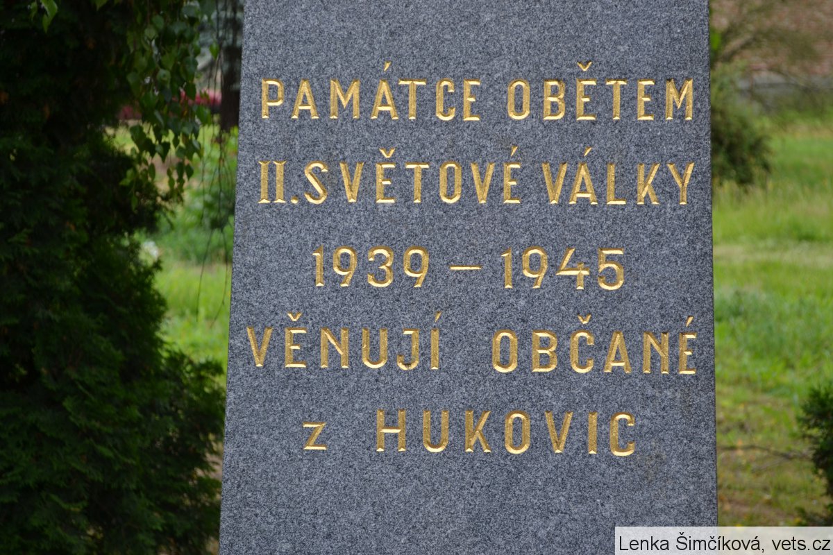 Umístění: Hukovice, hřbitov za kostelem Navštívení Panny MarieNápis: