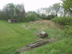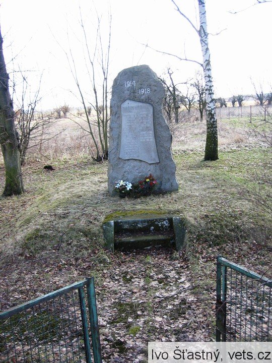 Na tomto neoznačeném místě byl pohřben německý voják zahynulý v květnu 1945 při osvobozování obce.