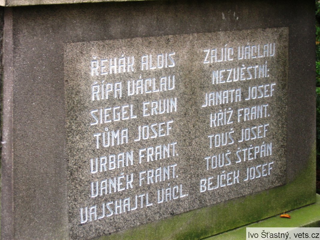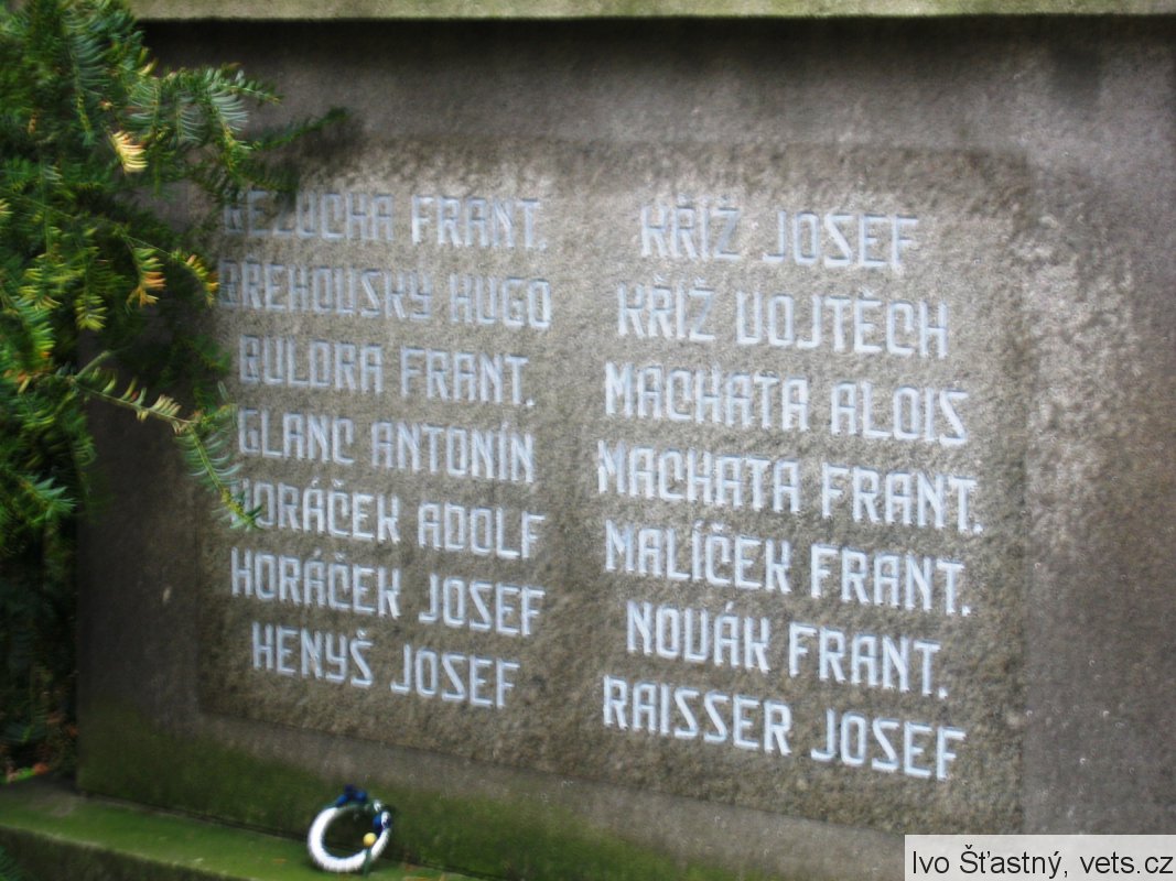 BEZUCHA FRANT., BŘEHOVSKÝ HUGO, BULORA FRANT., GLANC ANTONÍN, HORÁČEK ADOLF, HORÁČEK JOSEF, HENYŠ JOSEF, KŘÍŽ JOSEF, KŘÍŽ VOJTĚCH, MACHATA ALOIS, MACHATA FRANT., MALÍČEK FRANT., NOVÁK FRANT., RAISSER JOSEF