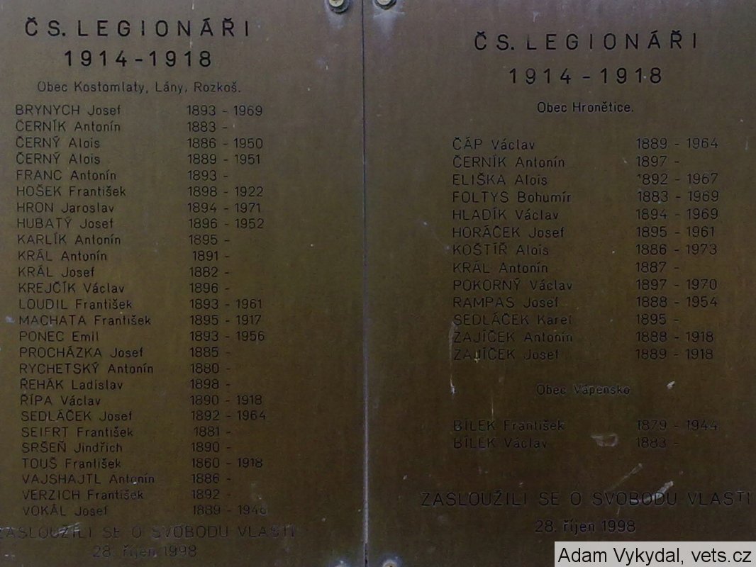 Umístění: Kostomlaty nad Labem, U Staré školy 47ČS. LEGIONÁŘI 1914-1918