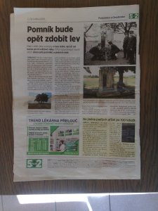 Z pomníku z r. 1921 byla v 90. letech ukradena socha lva.