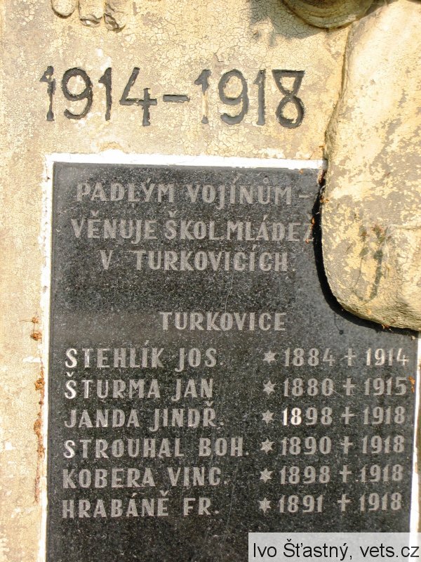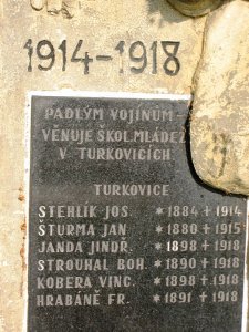 Umístění: Turkovice, vlevo na kopci u silnice z Nového Dvora směr Turkovice, před pomníkem Obětem 1. světové válkyNápis: