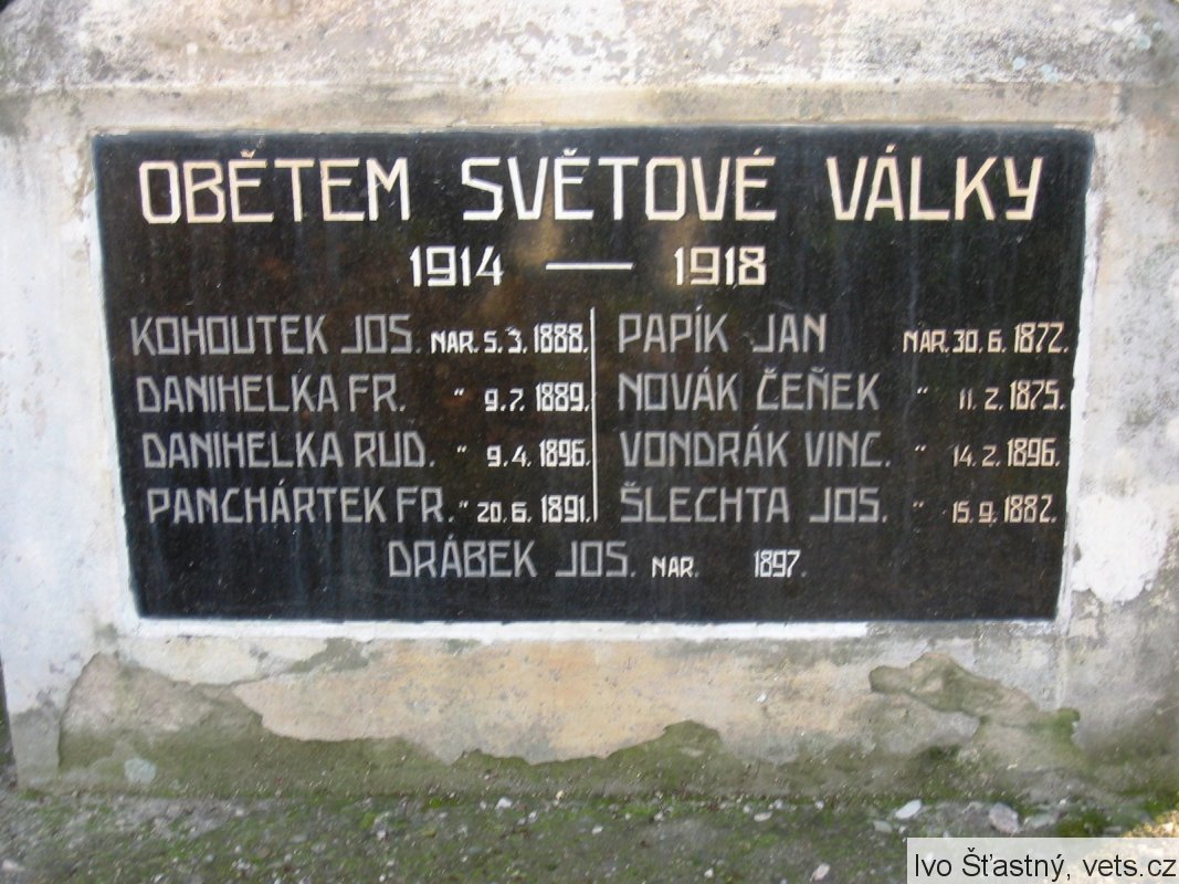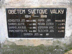 KOHOUTEK JOS. NAR. 5.3.1888, DANIHELKA FR. NAR. 9.7.1889, DANIHELKA RUD. NAR. 9.4.1896, PANCHÁRTEK FR. NAR. 20.6.1891, PAPÍK JAN NAR. 30.6.1872, NOVÁK ČENĚK NAR. 11.2.1875, VONDRÁK VINC. 14.2.1896, ŠLECHTA JOS. NAR. 15.9.1882, DRÁBEK JOS. NAR. 1897