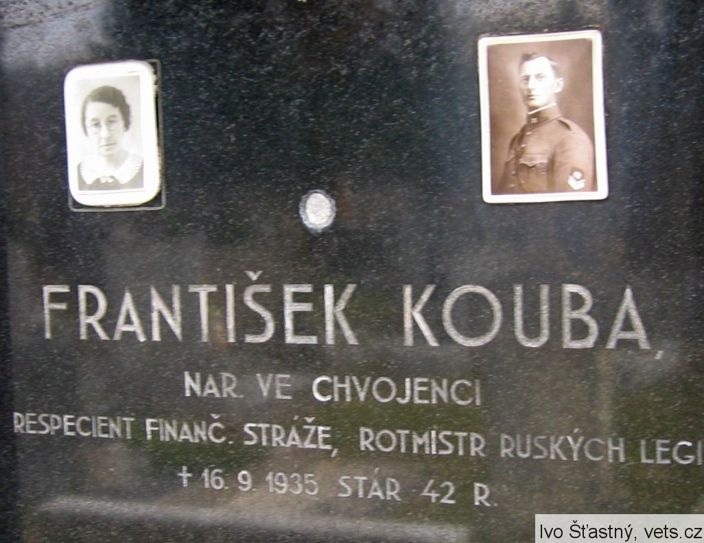 Kouba František, nar. 1.4.1893 Chvojenec. V RU armádě sloužil u 98. pěšího pluku jako svobodník. Zajat 2.2.1915, Zagovec. Do ČS legií v Rusku se přihlásil v Samaře, zařazen 14.10.1916 jako vojín k 1. střeleckému pluku. Demobilizován 20.1.1921 jako rotmistr dopravní roty. (zdroj databáze VÚA Praha)