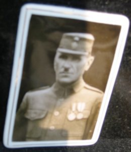 Ing. Václav Černý, kronikář: za předlohu francouzského legionáře posloužil František Zahradník – na fotografii ve stejnokroji francouzského legionáře. Vpravo od něho Václav Cincibuch, ruský legionář. Další osoby nejsou známy.