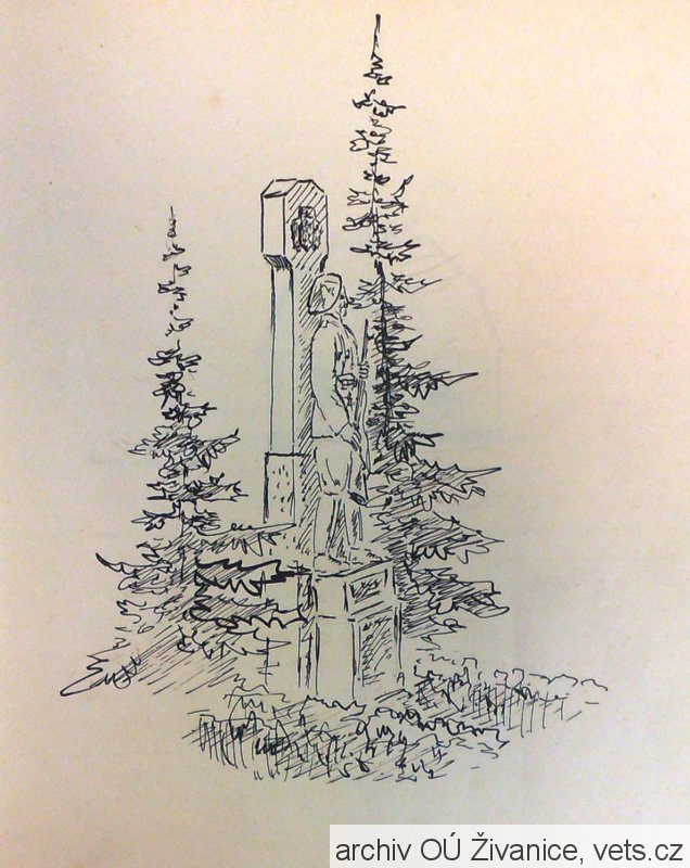Foto kresby - obrázek pomníku z kroniky obce.