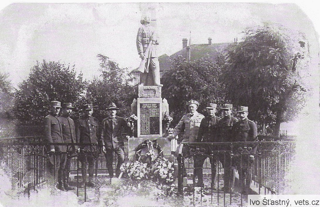 Na desce jsou uvedeni napřed padlí legionáři a pak dalších 20 padlých a 9 nezvěstných. Odhalen 22.9.1920 Pomník zhotovený sochařem J. Doležalem z Pardubic.
