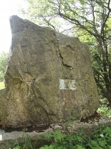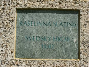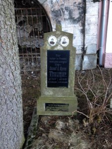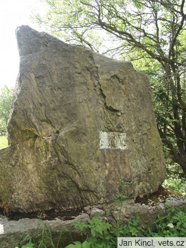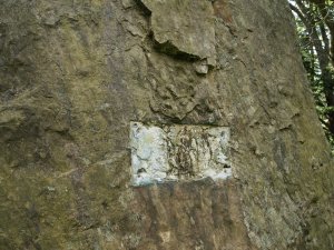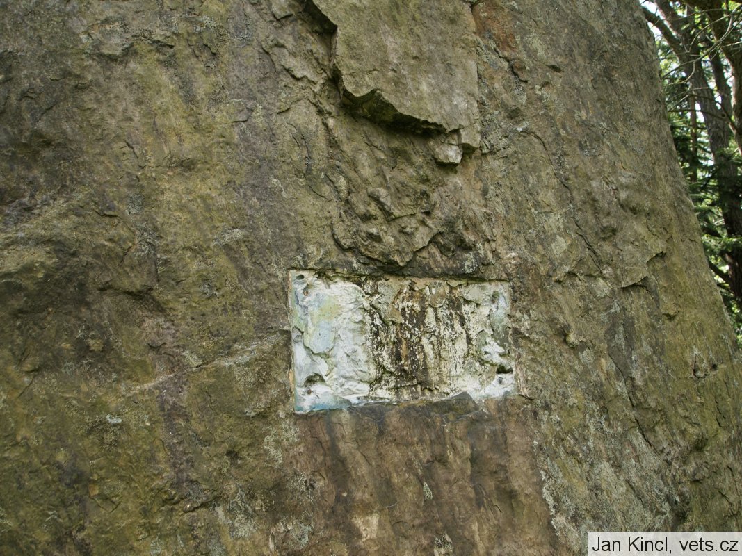 Na zadní části byla původně tabulka s německým nápisem, která byla po válce odstraněna. Potom zde byla umístěna měděná deska s reliéfem, ale ta byla následně odcizena.
