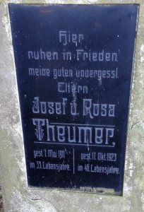 Theumer Josef: *26.12.1878 Schmiedeberg (Kovářská), č. p. 228. (zdroj: matrika Kovářská,římskokat. f. ú., Kovářská)