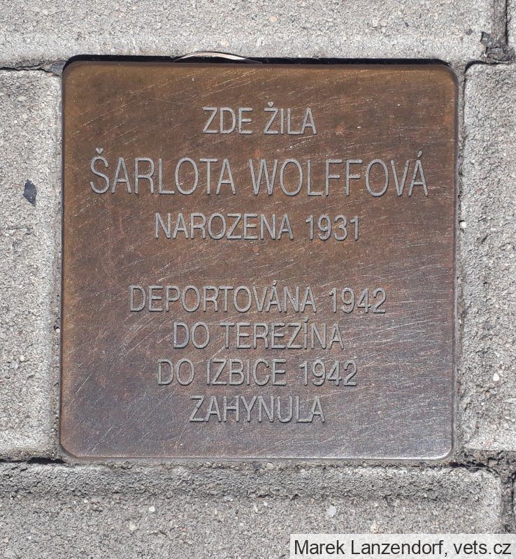 Šarlota Wolffová, narozena 8. 1. 1931. Poslední bydliště před deportací Roudnice. Adresa/místo registrace v Protektorátu Roudnice. Transport Y, č. 162 (22. 2. 1942, Kladno-Terezín). Transport Aq, č. 817 (27. 4. 1942, Terezín-Izbica). Zahynula.