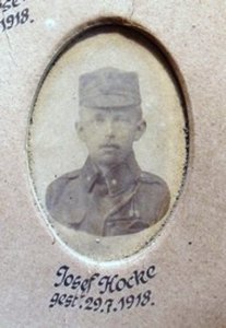 Hocke Josef: *6.3.1894 Waldeck (Valdek, okr. Děčín). Pomocný ekonomický úředník, svobodný. LstInft., Titl.Gefr., Batt. 171, 2. Komp., Hohenmauth (Vysoké Mýto). +29.7.1918 nemocnice Děčín, 2.8.1918 zde pohřben. Nelokalizováno.